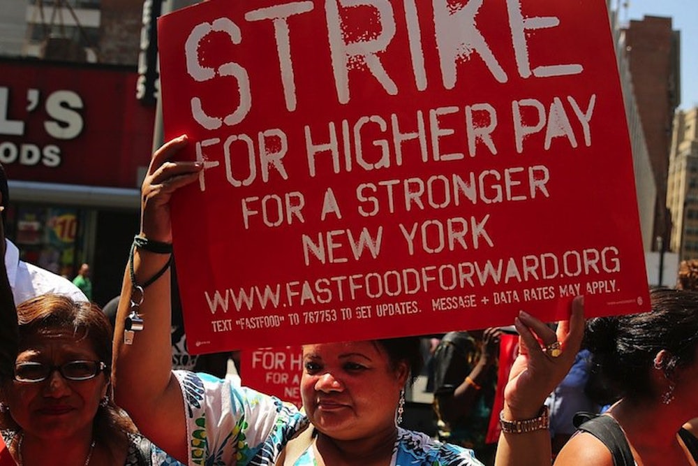 Today marks the fourth day in the largest fast-food walkout in U.S. history. One of the strikers’ key demands is a $15 hourly wage, slightly more than double the federal minimum wage of $7.25. Most people know that fast-food workers are on the low-end of the pay scale, but how low, exactly? Turns out that “combined food preparation and serving workers, including fast food” earn the lowest median hourly wage of any group in the Bureau of Labor Statistics’ most recently released occupational employment statistics. Here's how those workers’ wages compare to other common jobs.’