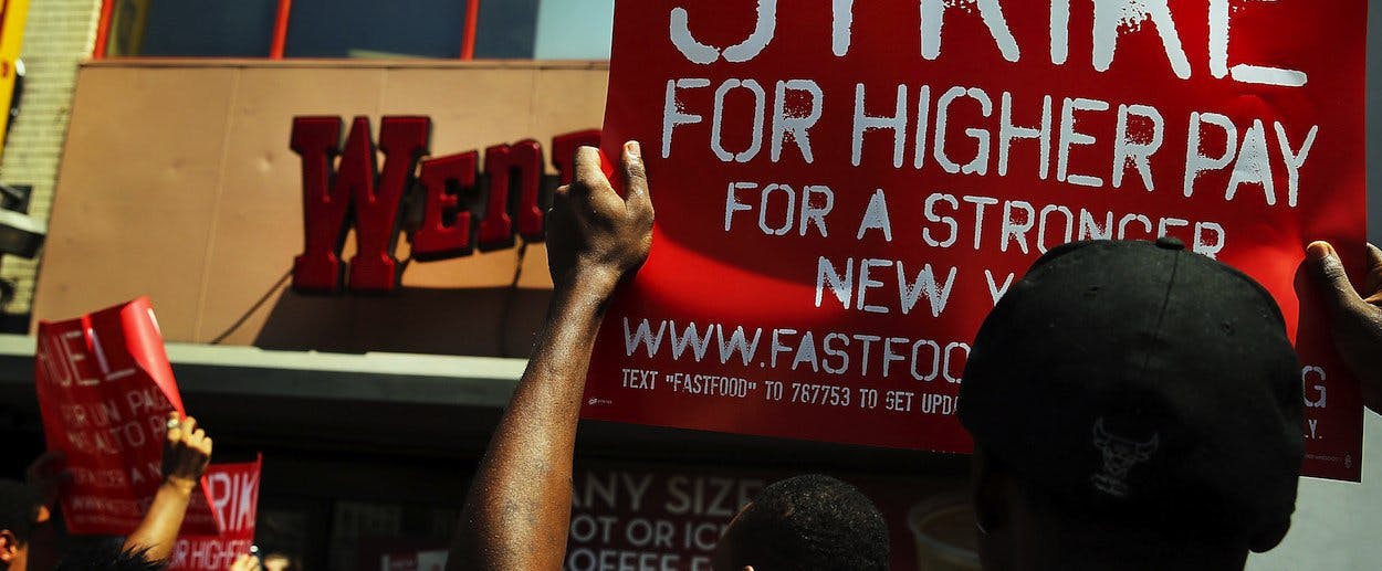 These strikes—staged at peak meal times in multiple cities throughout the week, bringing together workers from multiple fast-food chains—are a departure from labor's longtime tactic of collective bargaining. The aim is not so much to disrupt employers' balance sheets in a lasting, meaningful way: Striking workers can number as few as 10, protesting outside while most of their colleagues carry on inside. But the one-day strikes have shined a national spotlight on the low wages paid by companies like McDonald's, Burger King, and Wendy's. (The workers, many of whom make the minimum wage of $7.25/hour, are demanding $15/hour.)