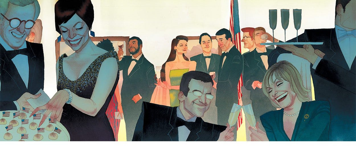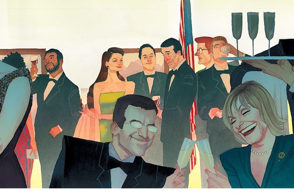 Even if I’m not to be trusted, maybe there are some New Republic readers who live so far outside the Beltway that they really do need a basic remedial session on This Town, rather than the third-derivative commentary (“ ‘THIS TOWN’ RATTLES D.C. SOCIAL SCENE” was one headline in Politico) that prevails inside Mark Leibovich’s world. Here goes. In Washington, there is a limited coterie of people—The Club, Leibovich calls them—who dominate and set the tone. Some of them are journalists, some of them are aides and operatives, and some of them are government officials, but most of them are lobbyists. They encounter each other incessantly at supposedly cause-supporting parties and supposedly somber funerals, in television talk-show green rooms and campaign-debate spin rooms, and at periodic ritual events like the quadrennial political conventions and the annual White House Correspondents’ Dinner. They speak to the public in sonorous, pious clichés; speaking to each other, they are gossipy, rivalrous, and cynical. Whatever each member’s officially assigned role in the Washington tableau is, her true purpose is to retain membership in The Club and to maximize her status (best accomplished by going on television a lot) and income (best accomplished by becoming a lobbyist).