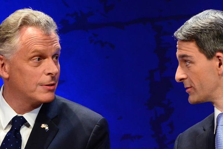 From his Tea Party ties to his social crusades, Cuccinelli may be, as Slate’s Dave Weigel writes, too conservative for Virginia. He is certainly caught in a net of sinking identity politics—especially thanks to his views on women. He's a vocal enemy of Planned Parenthood (an organization his running mate has compared to the Ku Klux Klan), and he opposes abortion, even in cases of rape and incest. He has also tried to do away with Virginia’s no-fault divorce law, which, as Amanda Marcotte has written, “would make Virginia the only state in the country not to have a law protecting its citizens’ ability to unilaterally end a marriage without giving a specific reason,” and could have grave implications for women trying to leave abusive marriages. Meanwhile, when Bloomberg polled respondents on state abortion laws, it found that