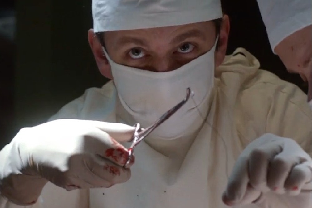 Sex is everywhere on “Masters,” a constant atmospheric hum, from a hotdog sizzling on the grill to a sensually eaten pickle. But—in contrast to what we’ve come to expect from cable drama—the action mostly happens in the spaces between the sex scenes, rather than during them. Virginia and a young doctor named Ethan Haas (Nicholas D’Agosto) sleep together early in the first episode, before we have had time to emotionally invest in either character; the next few episodes are spent exploring and unraveling the consequences—Virginia refuses to commit, Ethan seethes with unrequited lust.