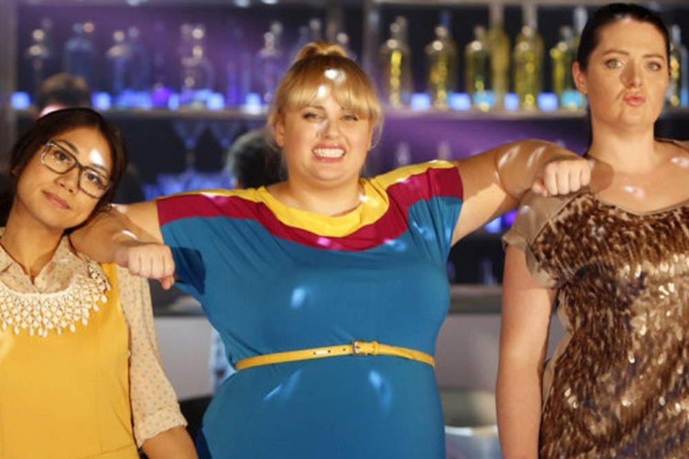 In one scene from Rebel Wilson’s sitcom “Super Fun Night,” which premiered last night on ABC, Wilson’s character—an attorney named Kimmie Boubier—careens screaming down the hallway as if fleeing a fire. “What’s the rush?” a colleague asks her. “Someone just tweeted there were jelly donuts in the break room,” she replies. “You’ve got the heart of a lion, in the body of a much larger lion,” Kimmie’s skinny co-worker tells her in another scene. There are countless body-related gags in last night’s episode alone. In one scene Kimmie gets her skirt stuck in an elevator and is left half-naked sipping a smoothie in front of her crush as the skirt unravels.