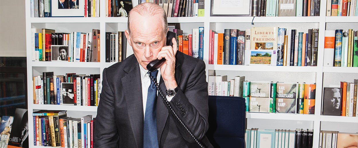When I visited Wylie at his midtown office, I was struck by the total, airless calm. Its neatness is inhuman, all stacked books and white walls. As for Wylie himself, everything about him suggests an elegant efficiency, from his carefully crossed ankles to the sculptural placement of his hands. And he is not worried at all.
