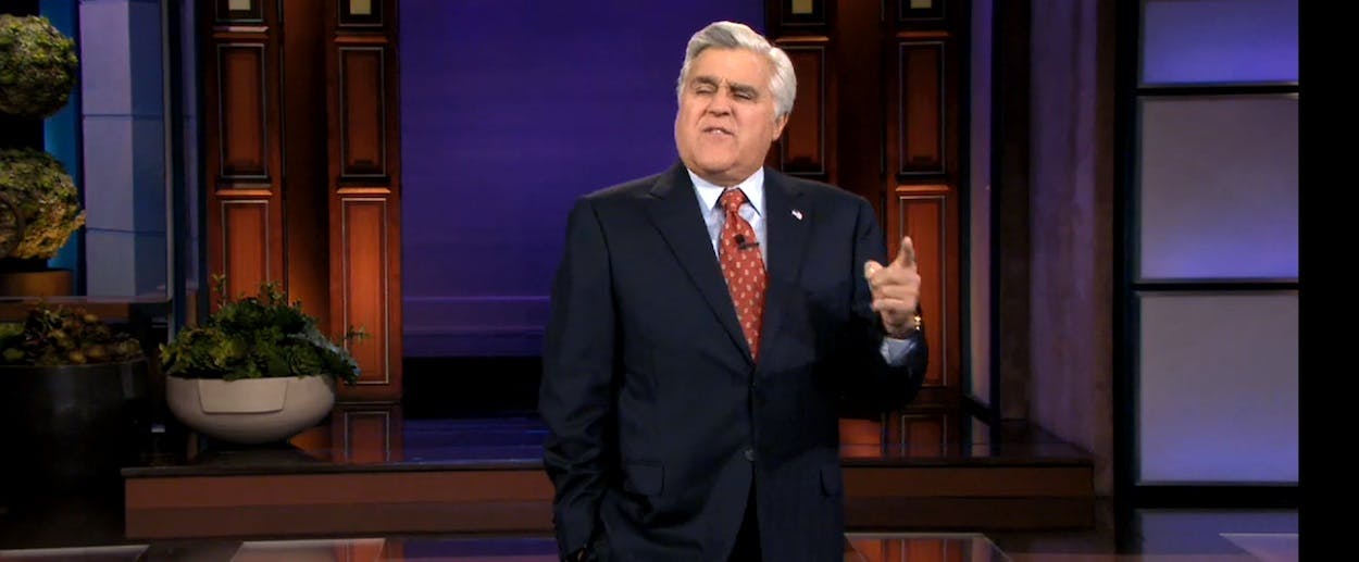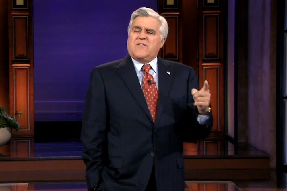 The government shutdown is obviously a ripe target for comedians, but who knew that Jay Leno would use the opportunity to make a bunch of jokes that were both unfunny and imbued with right-wing populism? (The former was perhaps predictable.) The gist of his monologues this week was essentially as follows: both parties are to blame for the shutdown, Washington is a horrible swamp, politicians are terrible, and oh, by the way, the government doesn't do anything anyway, and thus this whole shtudown thing is not so bad.