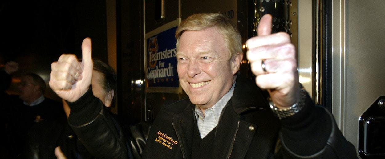 Dick Gephardt spent most of his 14 terms in Washington writing his legislative achievements in water. For a guy who spent decades in the Democratic Party's leadership, including stints as both the Majority and Minority Leader in the House of Representatives, Dick Gephardt isn’t yoked in political memory to any specific initiative or policy portfolio. Next to a walking media bonanza like Newt Gingrich—or even the elegant, unctuous vampirism of his one-time Senate counterpart, Tom Daschle—Gephardt’s flavorless public profile was never going to leap off the screen. In advance of the 2004 Iowa primary, none other than The New Republic proclaimed him “a dullard, an ideological changeling, and the stale face of a timorous Washington Democratic establishment.” That was in an endorsement, by the way.