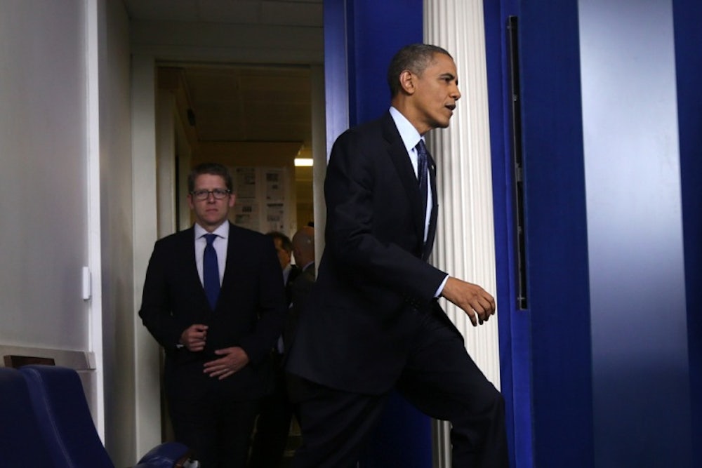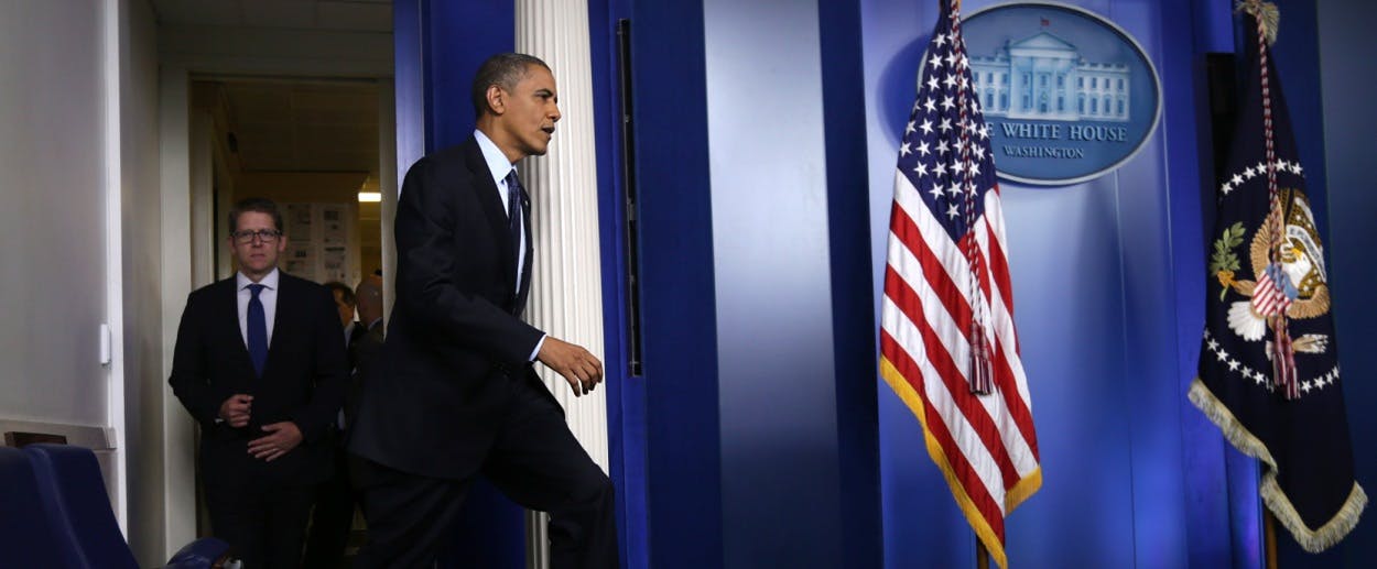 President Obama should give in. Yes, this mess is all the Republicans’ fault. Yes, it’s outrageous that they can hold the government hostage in order to reargue a law that’s been voted on, signed, enacted, and upheld by the Supreme Court. Yes, it’s a terrible precedent. Nevertheless, he should give in.