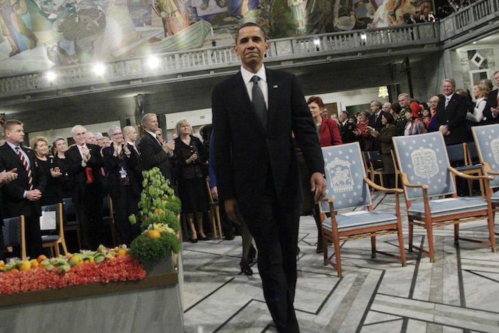 That would be much too cynical a strategy, of course, for a group with such a high-minded mission. And it’s not like the prize, whoever wins it, draws that much attention anyway; we spend exactly one day a year talking about it. But if these Norwegians want the Peace Prize to have real import beyond the cash payout, and not be made to look foolish by history, then it should stop awarding it annually. Instead, give it out only when it’s truly merited, and without warning. Say someone convinced Israel and Palestine to agree on a two-state solution—yes, by all means, give that person a gold medal the size of a kitchen table. But not right away. Wait a few years, to make sure the deal actually sticks and that the would-be recipient isn’t revealed as, say, a war criminal. I can only imagine the interest Henry Kissinger is still collecting on his prize.