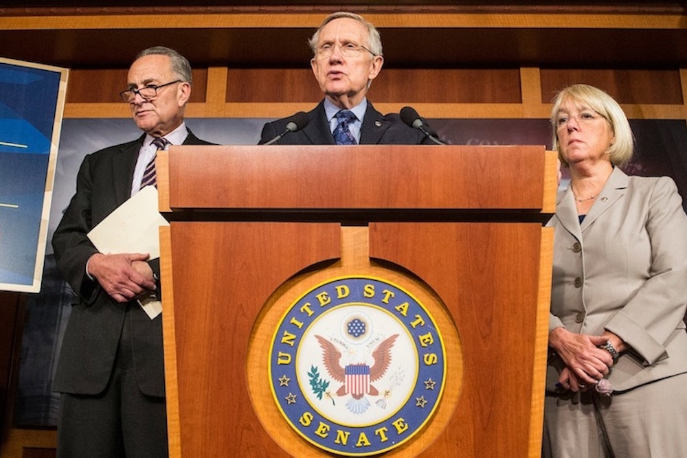 But Democratic leaders haven’t been changing the terms of the deal. On the contrary, Obama, Reid, and House Democratic Leader Nancy Pelosi have been remarkably consistent—over time and with one another. The Democrats are happy to negotiate over fiscal policy, they say. But they won’t allow Republicans to gain extra leverage by refusing to fund the government or increase the Treasury’s borrowing authority. As far as the Democrats are concerned, those tactics amount to extortion. Allowing Republicans to succeed, they say, would be even worse than shuttering the government or allowing a default—even though the former has been plenty bad and the latter would be even worse.