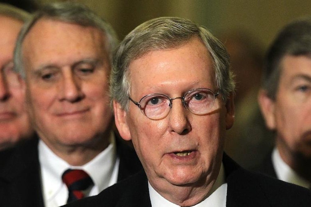 This is a pretty perfect microcosm of the way old boys’ clubs work. I totally believe that cutting Collins out was not “meant as a slight against her.” But she lacks the standing necessary for senators to worry about slights against her. Meanwhile, all the important players here are friends or allies: Alexander, a previous chairman of the Republican Senate Conference, is close to McConnell, the minority leader; Alexander is also close to Schumer, the third-ranking Democrat; Schumer, in turn, is close to Sen. Harry Reid, the majority leader. Here is betting that these senators’ shared manhood is, at the very least, not an impediment to their “tight relationships.” And all of this is to be expected when 11 of the top 12 Senate officials are men and indeed when (paging 100 Percent Men) there has never been a woman Senate majority or minority leader or whip.