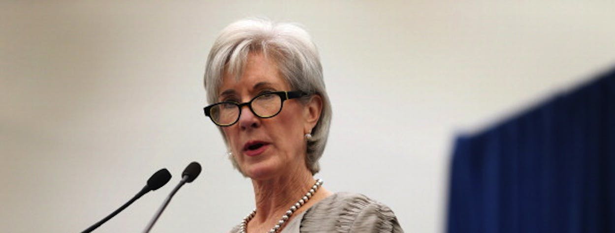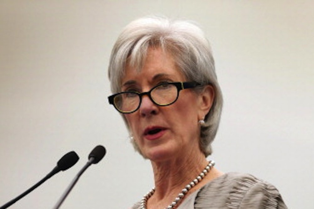 Ever since the disastrous launch of the federal Obamacare website, conservatives have been calling for the head of Kathleen Sebelius, the secretary of Health and Human Services. Representative Bill Johnson, Republican of Ohio, answered "absolutely" after being asked whether Sebelius should get "canned." Ken Cuccinelli, the Republican candidate for governor of Virgina who thinks he's a gynecologist, stated at a recent rally, “I believe President Obama ought to fire Kathleen Sebelius.” The remark was met with hearty cheers.
