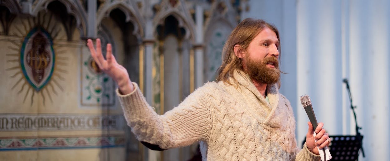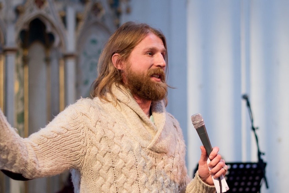 I met Jones in the lobby of the Woolly Mammoth Theatre, where he would lead a service later that evening. He was charismatic enough that I forgave him for turning up to our interview three hours late. Many journalists have noted his resemblance to popular representations of Jesus; with his unkempt beard, imposing height and thick glasses, he really does look like some kind of hipster Messiah. The attention being paid to the Sunday Assembly probably has a lot to do with its founders’ look. Evans, with her big green eyes and mass of blonde hair, looks more like a model than a preacher. The idea of a godless congregation isn’t new, after all, but the fledgling Sunday Assembly has already been written up in The Guardian, The Economist and The New York Times.