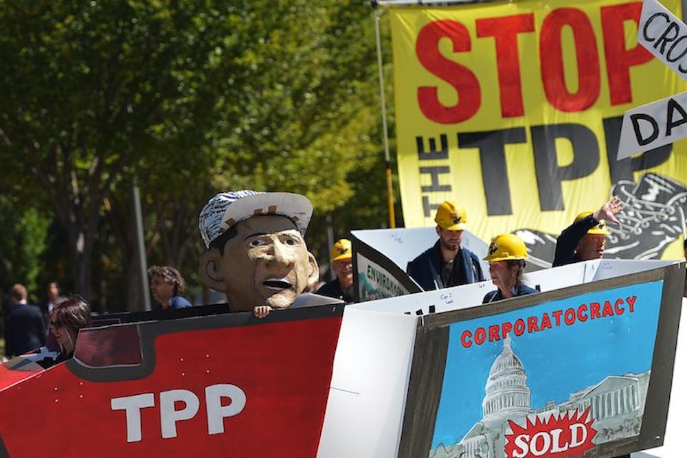 Up until now, public opinion of the deal has generally been bland—last week The New York Times endorsed the agreement. “The hope... is that by completing deals with Europe and Pacific nations, Washington will set an example for the rest of the world to follow,” the editorial reads. Some people “are worried about provisions on intellectual property that could restrict the availability of generic medicines and grant longer copyright protections to big media companies,” it muses. But then it drops the point.