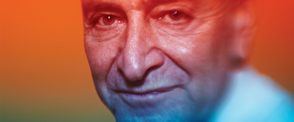 “I feel better with my feet up,” Senator Charles Schumer said when we sat down in his spacious Washington office. His knees are bad, he explained. He tries to put as little weight on them as possible. But if Schumer’s informality can be striking in a senior senator, it becomes almost disorienting when mixed with his famous energy and intensity. Though voluble in his answers, he was never warm. And bum knees notwithstanding, he rarely kept still, going back and forth between sitting with his legs propped on a coffee table and reclining on one of his office’s several plush couches, taking his shoes off and putting them back on as his posture called for. At one point, Schumer asked whether I wanted some water. After I told him that I did, he rifled a bottle at me from across the room.