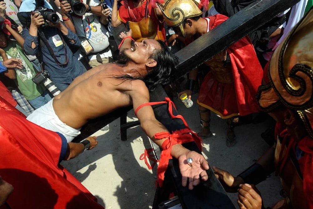During “Holy Week” in some Filipino villages, Catholic men reenact the death of Jesus: They walk through the streets for miles, beating their own backs with sticks— and some even spend a few hours nailed to a cross. One participant told a reporter afterwards, “I feel good because my suffering has ended.” With that attitude, any holiday would be bearable.