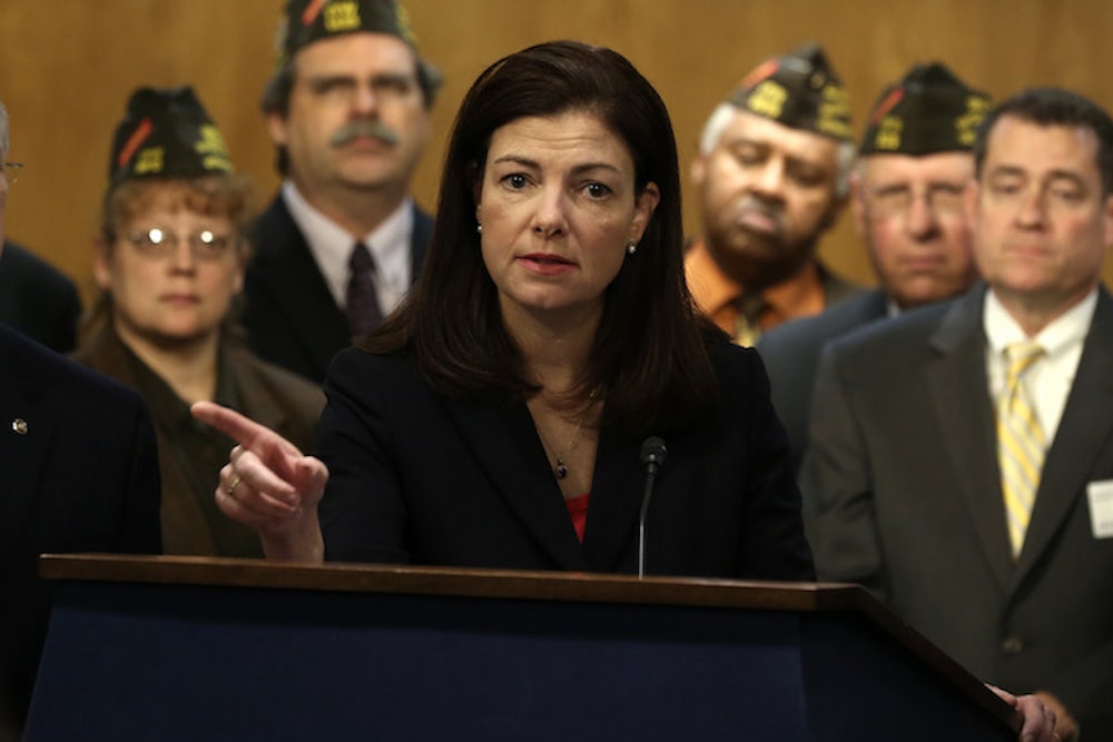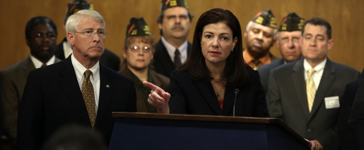 Organizing a press conference with veterans groups, Ayotte called the pension reduction a “dealbreaker” and proclaimed: “We could quickly find $6 billion that would not be taken from the backs of our men and women in uniform.” She was joined in this push by, among others, fellow Republicans Roger Wicker of Mississippi and Lindsey Graham of South Carolina, who declared: “Of all the people we could’ve picked on to screw, how could we have arrived here?”
