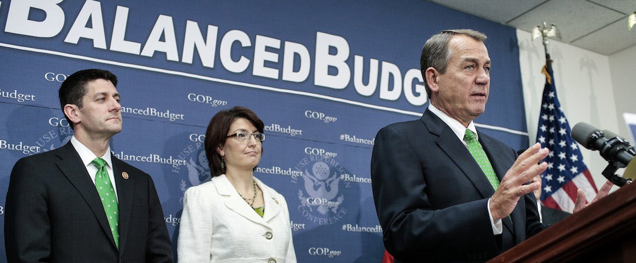 The year 2013 will be seen as a year of crushing intellectual defeat for advocates of fiscal austerity. There were many smaller victories, but this big one came in April. Researchers at the University of Massachusetts examined the Austerian paper, "Growth in a Time of Debt," by Carmen Reinhart and Ken Rogoff, which said that countries whose debt-to-GDP ratio reaches 90 percent experience dramatically slower growth. The UMass folks found not only dodgy statistics and backwards causation, but a goof in the paper's Excel spreadsheet. The causation and statistics errors were more serious, but the fact that elites around the globe had gleefully embraced something with a flub any office temp could understand was horribly embarrassing.