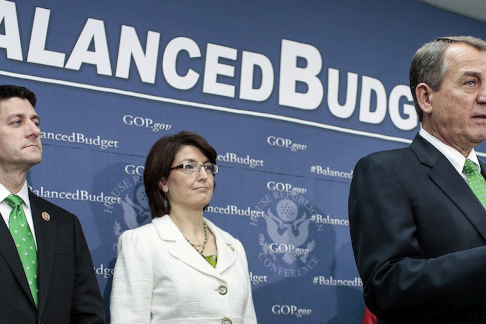 So while Republicans are largely immune to evidence, it's also true they don't actually care about the deficit in and of itself. They favor reduced taxes on the rich and cutting social insurance. What's more, conservative reformists at places like National Affairs have gotten louder and bolder in their advocacy of new thinking, even including infrastructure spending.