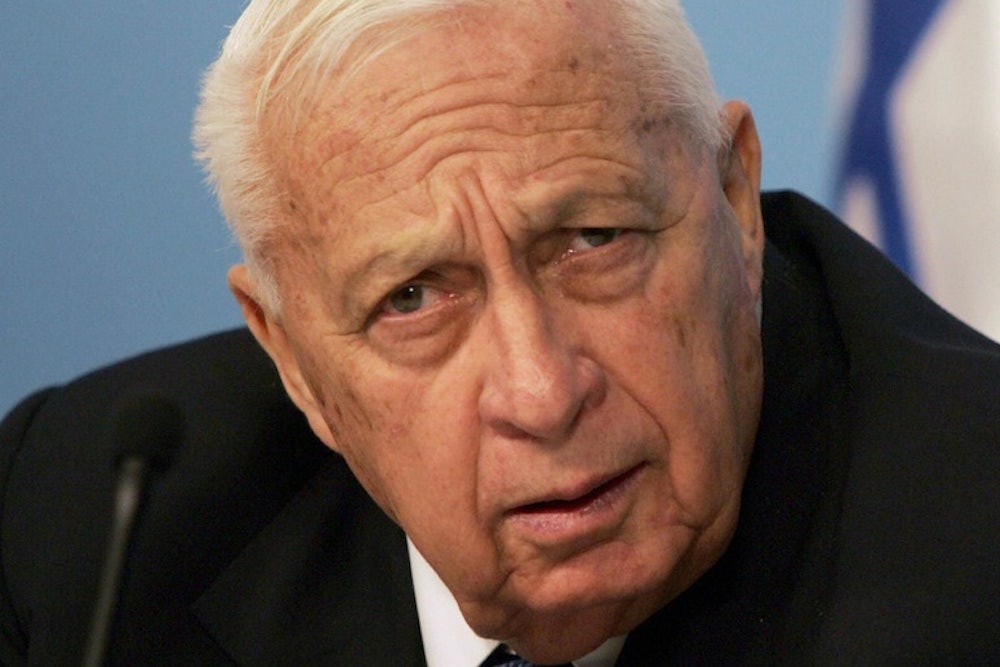 Sharon, who died Saturday at the age of 85, did not create a Palestinian state. But as prime minister from 2001 until his stroke in 2006, the onetime patron saint of the settlement movement stumbled into laying the foundations for one—both on the ground and in the political arena. He did so by withdrawing Israeli settlers and forces from Gaza (and by planning, as I reported last year, to carry out further unilateral withdrawals in the West Bank). He did it by building a fence in and around the West Bank that, to most Israelis, signaled the end of Greater Israel. And most significantly, he did it by turning the two-state solution from a left-wing position into one accepted in the center and even on the right, reframing the discussion about peace from one of the chimerical “new Middle East” once promised by former Prime Minister Shimon Peres to one of Israeli self-interest. As Elliot Abrams, former George W. Bush adviser and author of Tested by Zion: The Bush Administration and the Israeli-Palestinian Conflict, recalled to me, Sharon adviser Dov Weissglass—resisting calls to coordinate the Gaza withdrawal with the Palestinian Authority—lectured the Americans, “[H]e needs to explain the withdrawal from Gaza in a language that you do not speak: Likudish. And in that language, you have to say, ... ‘We’re not doing this for the Palestinians, we’re not doing this with them. We’re doing it as part of our general hatred of them.'”