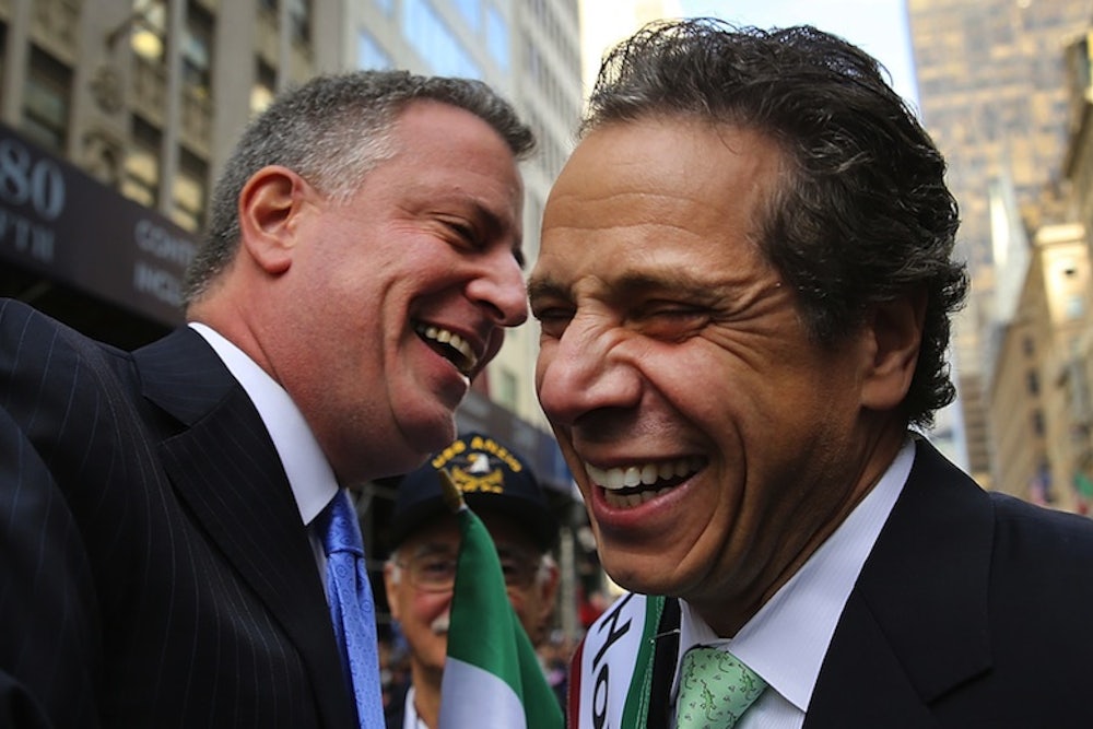 De Blasio wants to raise by .5 percent the marginal income tax rate on New York City residents who make more than $500,000 a year in order to fund what would be, by the fall of 2015, universal pre-K for the city’s more than 73,000 eligible four-year-olds. He cannot do this without Albany’s approval. For reasons too byzantine and depressing to go into, that means he cannot do it without Democratic Governor Andrew Cuomo’s approval. (For the record, Assembly Speaker Sheldon Silver supports de Blasio’s plan.) Cuomo is up for re-election in November, and will almost certainly win, but as an aspiring national figure, he wants to win handily. He has been running on a plank of keeping taxes in line. Duly, he has opposed de Blasio’s plan, and has seemed to play a trump card by promising to fund universal pre-K (throughout the state, in fact) with existing funds. (De Blasio has known Cuomo for 20 years, having worked for him at the Department of Housing and Urban Development, and there is plenty of psychodrama there.)
