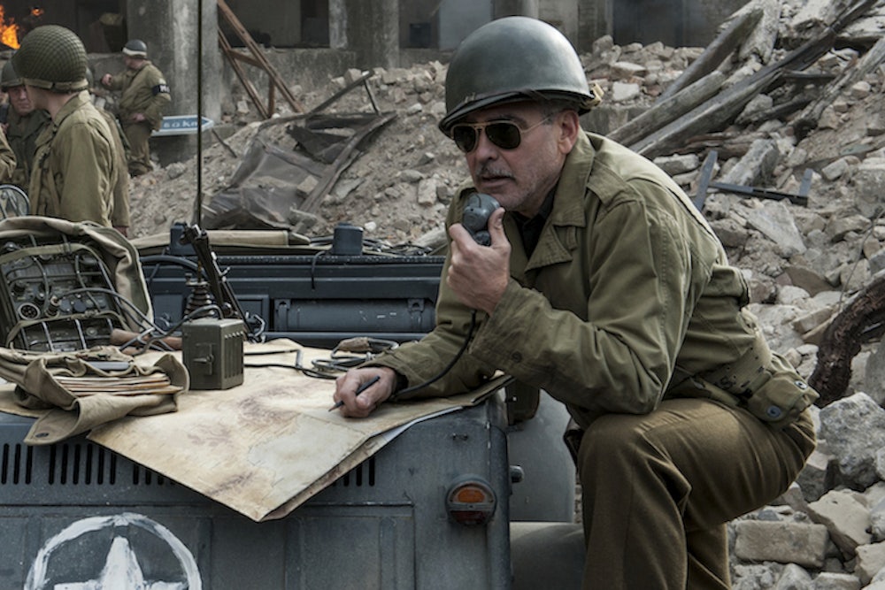 That’s how George Clooney decides what a cool fellow has to do. Yes, Clooney plays a “character” in this film, just as he co-produced it, co-wrote it, and directed it. There is even a moment when his wry, wistful fellow muses over his old life, when he would get a coffee and an onion bagel at a New York deli—it feels like chewy substance. But it’s just George, looking dapper but rather elderly in uniform and setting out to save the great works of plundered art because—after all, guys—isn’t that what this war is about? Or was the war fought to promote dumb movies?