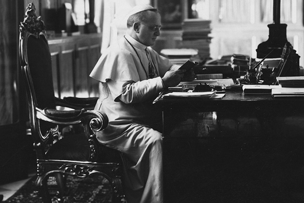 Yet there is a beginning before the beginning. In his prologue, Kertzer turns to Pius’s last days. The dying pope had convened a solemn meeting of bishops in St. Peter’s Basilica for February 11, 1939. There, his entourage feared, he planned to lash out at Mussolini’s policies. The text of the papal speech was ready, but would the pontiff have the strength to deliver it? Would he even live long enough? Pius ordered the text to be printed in hundreds of copies for distribution to the bishops, if need be. On February 10, the Pope died. Mussolini was relieved: the speech, of which he had been informed by his spies, would not be delivered. But what about the printed copies? There was a man at the highest level of the Vatican hierarchy who understood the need to calm the waters (and on whom Mussolini could rely): he was the Vatican’s secretary of state, Cardinal Eugenio Pacelli. Pacelli, Kertzer reports, “ordered the pope’s desk cleared, the printed copies of his speech seized.” And three weeks later, Cardinal Pacelli was elected pope and took the name Pius XII.