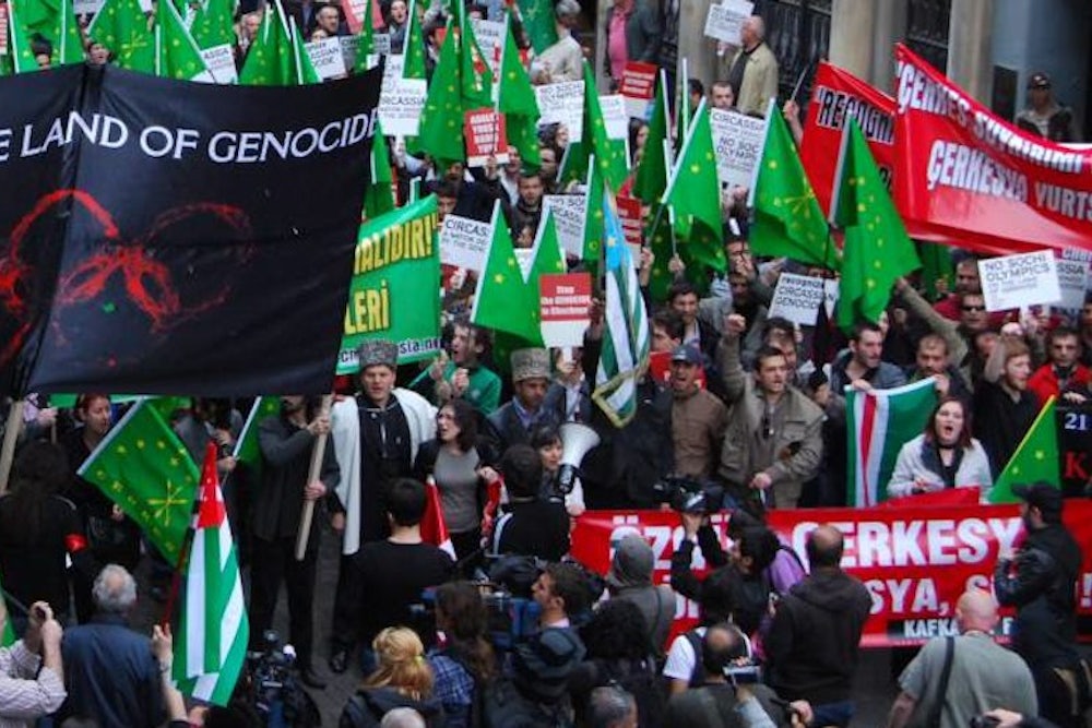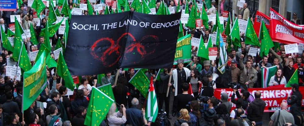 Beginning Friday night, hundreds of millions of people will tune in to the Winter Olympics, which Russia hopes will prove to the world that the country has re-emerged as a world power after its long, post-Soviet funk—and that Sochi itself deserves "international resort" status. Elided from this narrative, though, is what took place in exactly the same spot 150 years ago, when Sochi's indigenous residents were routed by the Imperial Russian Army, the survivors herded onto ships and exiled, never to return.