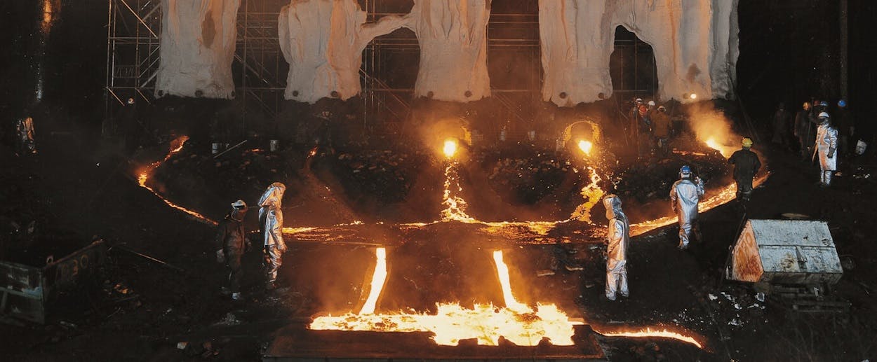 The big news—the amazement—is that Barney holds all this together for as long as he does. The first three or four hours of River of Fundament are confidently, elegantly paced. Barney has grown beyond the self-consciously static visual style of the Cremaster cycle, the set of five films (1994–2002) which have something to do with the reproductive cycle and somehow involve the murderer Gary Gilmore, the magician Harry Houdini, the actress Ursula Andress, and a red-and-gold baroque theater. In River of Fundament, his abiding obsessions with ritual, fetish, and movie-star charisma are presented with considerably more fluidity—with a roving camera eye that suggests playfulness, even wit. When Barney organizes one of his lunatic parades in Los Angeles for River of Fundament, with workingmen and musicians in fancy costumes accompanying an American-made car to its death (or is it reincarnation?), he keeps the camera in motion, so the delirious combination of Egyptomania and Chrysler-mania feels light, almost fairytale-ish. And in the first couple of hours of River of Fundament, dominated by a fictionalized wake held for Mailer in his Brooklyn Heights apartment, the chiaroscuro lighting and quickening pace make it easy to enjoy watching the talented performers, professional and amateur alike, drift through a high-flying literary-artistic celebrity mash-up. Stritch is great to watch in her owlish glasses, even if she’s reading some of Mailer’s most bombastic prose. And the artist Lawrence Weiner and the columnist Liz Smith are diverting screen presences, at ease before the camera. Paul Giamatti, playing Pharaoh Ptah-Nem-Hotep but in modern dress, has the professional’s way of bringing some dramatic sense to impossible mystico-Dadaist situations. And deeper into the movie, when Barney presents an immense iron pour staged in a nighttime Detroit, there is authentic moviemaking magic in the funky sumptuousness of the antiquated industrial architecture, the fleet of workmen like Constructivist robots in their boxy fireproof clothing, and the glittering rivulets and pools of molten metal.