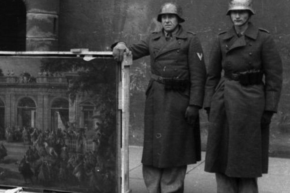 With the discovery of the Gurlitt trove in Munich, the fascination with paintings as victims is flourishing again—they “are the last prisoners of World War II,” declared Ronald Lauder. There is also Ocean’s Eleven Meets the Third Reich, or The Monuments Men, the trashy and supercilious film that George Clooney has made about the search for art stolen by the Nazis, a philistine film about a band of anti-philistines, a caper movie with a jaunty score whose pieties and solemnities cannot disguise the fact that the only thing it believes in is its own coolness. There is not a moment in this film as thrilling as the account by Pfc. Lincoln Kirstein—“there [in the salt mine at Altaussee] resting a foot off the ground, upon four empty cardboard boxes, quite unwrapped, were eight panels of ‘The Adoration of the Lamb’ ”—in Town and Country in September 1945, or as stirring as his verses about the adventure in Rhymes of a Pfc.