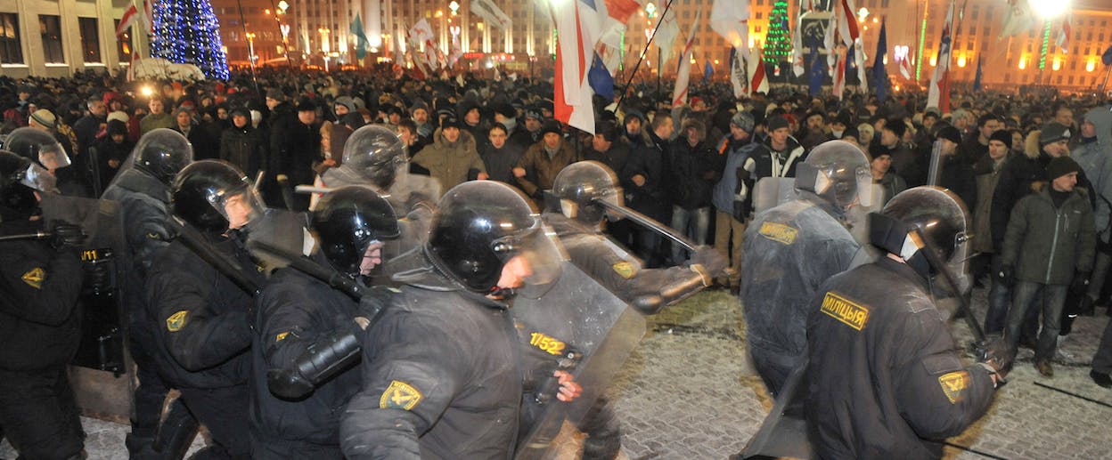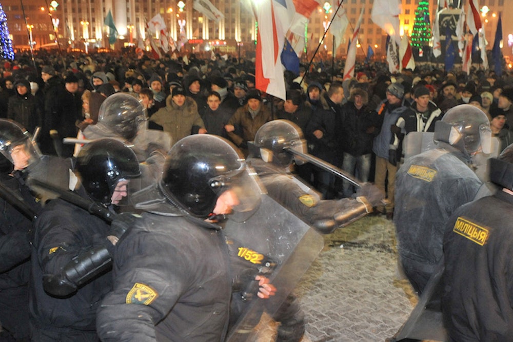 Belarus, Ukraine’s fellow satellite state and Europe’s last dictatorship, is a worst-case scenario for what happens to protest movements in former Soviet states. In December 2010, President Alexander Lukashenko won his fourth presidential term by rigging the elections to give himself 80 percent of the vote. During Lukashenko’s presidency, “the former Soviet republic has never held a poll seen as fair by international monitors,” according to the BBC. Massive protests broke out in Minsk’s very own Independence Square, and five opposition presidential candidates were jailed. Like in Ukraine, protesters stormed government buildings and were beaten down by riot police. Lukashenko’s government outlawed unsanctioned street protests, and the people responded by staging “silent” protests. Then Lukashenko banned those too, and continued to arrest hundreds. Belarus now resembles “something akin to a prison colony,” as Belarusian journalist Andrej Dynko put it.