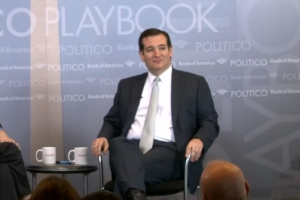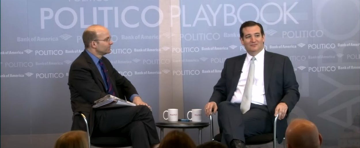 At this morning's Playbook Breakfast at the Newseum, Politico White House Correspondent Mike Allen grilled Senator Ted Cruz on his relationship to the Senate Republican leadership, which has been nothing if not contentious. Allen made a point of trying to get Cruz to disparage his colleagues by name, but the senator, who says he has "never treated another senator with anything other than respect and civility," refused to give in—and then Allen brought up fellow Texas Senator John Cornyn, who is facing a primary challenge by a Tea Partier.