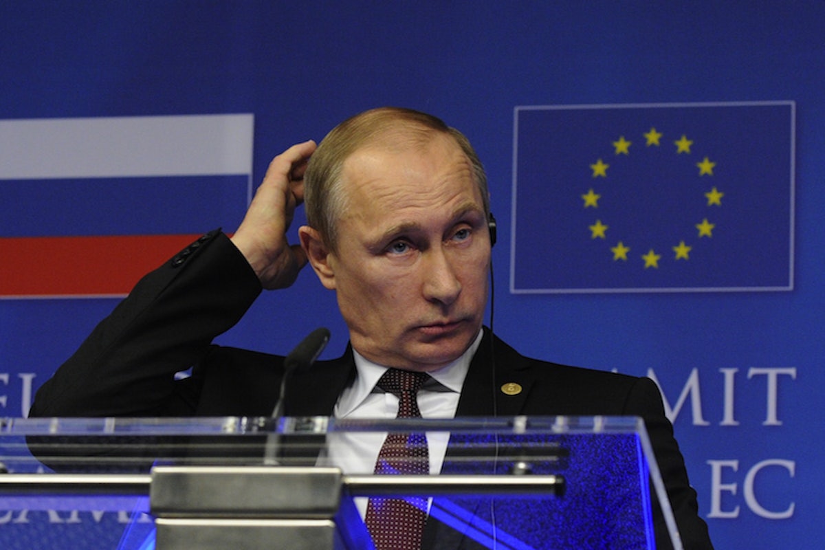 In dispatching troops to Ukraine, Russia has violated international law, flouted multiple treaty commitments, and set the stage for a European war. It has no casus belli, aside from an eccentric understanding of the domestic politics of a neighboring country. The Kremlin’s surreal warmongering is bad enough, and obviously demands a response from the European Union, the entity that, beyond Ukraine itself, is most immediately concerned. Ukraine borders on four European Union members, and its new government has made joining the EU its foreign policy priority.