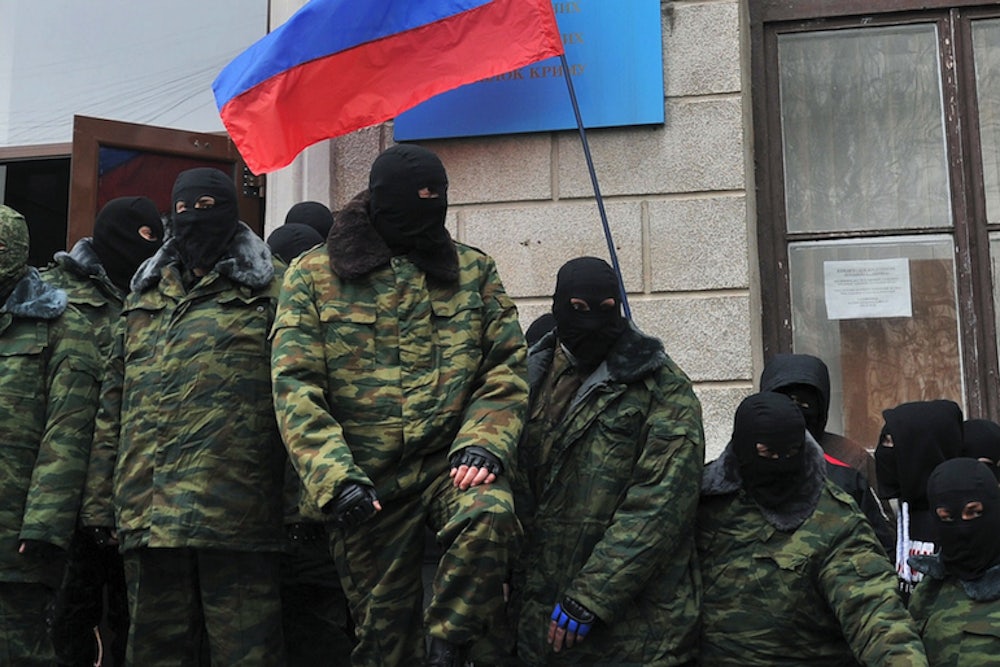 While you were sleeping, Russia seized the Crimean peninsula of Ukraine, and Ukraine mobilized its armed forces—reservists included—to respond to Putin’s declaration of war. Things are escalating quickly in Crimea, where the Ukrainian and Russian navies are currently locked in a standoff; both fleets are based on the Crimean coast in Sevastopol. Ukrainian Navy Commander Rear Admiral Denis Berezovsky—who was appointed yesterday after the previous Navy chief resigned—just defected to the Crimean Autonomous Government, joining Russia’s side. The Ukrainian government has initiated criminal proceedings against him. Some Ukrainian military units already voluntarily switched sides, and they were joined by Ukraine’s flagship vessel yesterday. Crimean Prime Minister Sergei Askenov, head of the Russian Unity Party, announced the creation of the Crimean Naval Forces today. Also today, in response to Berezovsky, Crimean military commander Mykola Balaban reaffirmed his pledge of allegiance to the people of Ukraine.