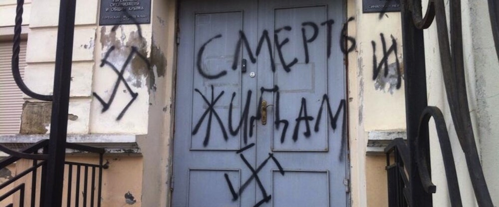 But leaders of Ukraine’s own Jewish community have alleged that recent anti-Semitic provocations in the Crimea, including graffiti on a synagogue in Crimea’s capital that read “Death to the Zhids,” are the handiwork of pro-Russian Ukrainians. Rabbi Yaakov Dov Bleich, who presides over Ukraine’s Jewish Federation, signed a letter asking Russia to end its aggression, and compared the current climate in Crimea to that of pre-Anschluss Austria. Of Russia’s warnings that there were anti-Semites among the Kiev protesters, the rabbi added, “The Russians are blowing this way, way out of proportion.”