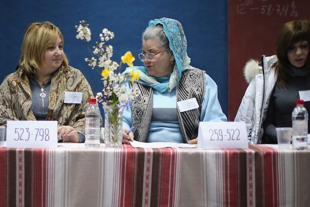 In a polling station in a school in the mainly Tatar region of Kamenka, local officials declined to tell me how many people had come to vote, and explained away the fact that not a single person came in during the half-hour I was there.