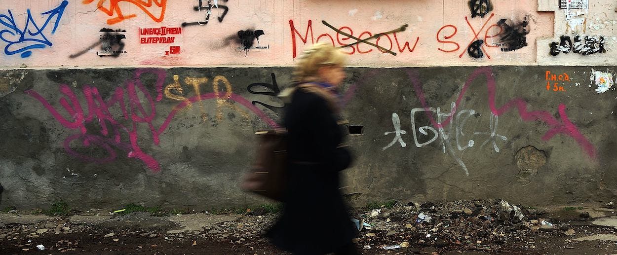 I went to a café with Tatyana Skorik, a handsome blonde Ukrainian woman whose hands shook throughout our conversation, a bracelet in the Ukrainian colors of blue and yellow trembling on her wrist. She had not gone to the square to see the Russians’ celebration, or even watched it on television. “I could not watch this, it would be like watching lunatics celebrate. The Soviet Union used to put sane people in mental hospitals, and that’s what I feel like, as if I am a sane person who’s been put in a mental hospital,” she said.