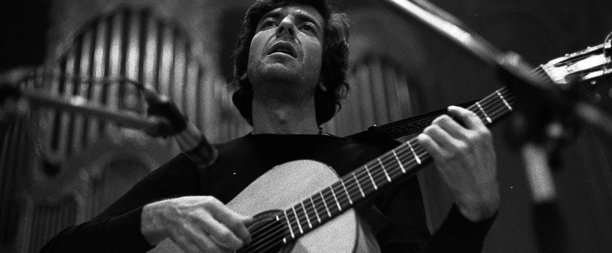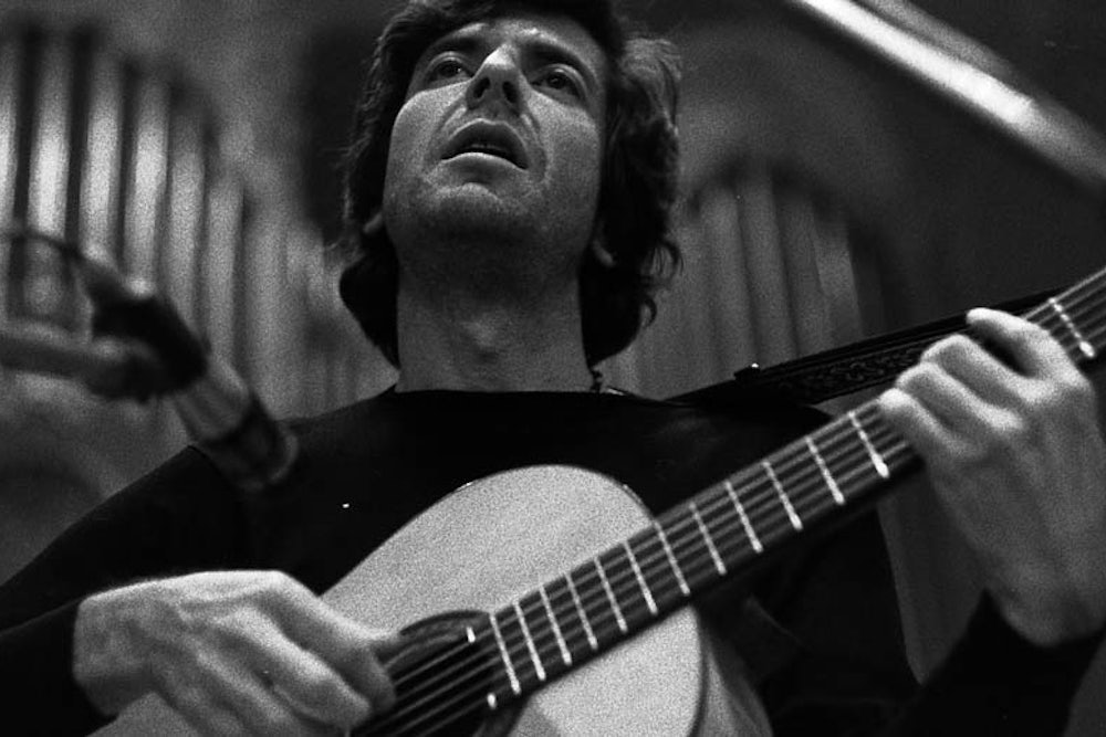 And yet, he was far from content. The poetry for which he was so lavishly praised had begun to feel flightless to him, an aesthetic pursuit that fell short of saying anything truly meaningful. He tried breaking the rules with his third collection, Flowers for Hitler, a slim book filled with short, strange anti-poems that seemed frustrated with the form’s inability to deliver truly raw emotions, bereft of adornment and artistry. It hardly seemed to make a difference. Cohen was still expected to play the part of the hip poet. He was growing tired. At a press conference in December, wearing a tight leather jacket and a skinny black tie, with a cigarette dangling from his mouth at a sharp angle, he looked less like a person and more like a collection of straight lines that had temporarily coalesced into human form. When asked about his plans for the future, he grinned and said “suicide.” He was joking, but not only. His life, he knew, needed a different path. In a talk at the Jewish Library in Montreal, a few days after Christmas, he finally found it.