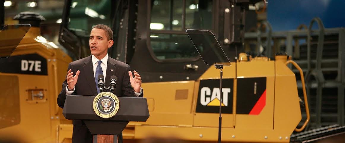 The patriotic rhapsody about the company has swept up even President Obama, who declared during a 2009 visit to its plant in East Peoria: “You can measure America's bottom line by looking at Caterpillar's bottom line.”