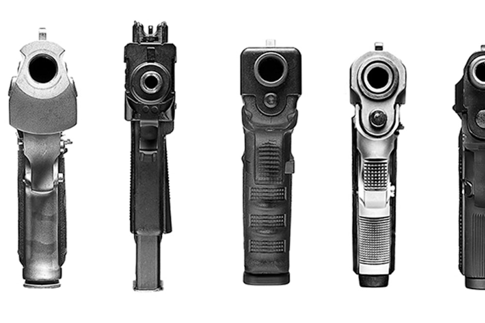 The brainchild of Canada-based photographer Peter Andrew and Creative Directors Simon Duffy and Derek Blais, The Point Blank project shoots handguns in close-up, portrait-style, and straight down the barrel. In doing so, the project creates large-scale, extremely detailed, and uncomfortably in-your-face frontal photographs. The images have a jarring beauty in the symmetry of design, the depth-of-field, and the level of detail—all the more powerful for their implicit violence. These subjects have, quite literally, the power to kill. They began the project in May 2011, and hope to publish a book. The series won an award in the 2013 Communication Arts and Applied Arts Photography Annuals and has been exhibited at Klaus Nienkamper in Toronto.
