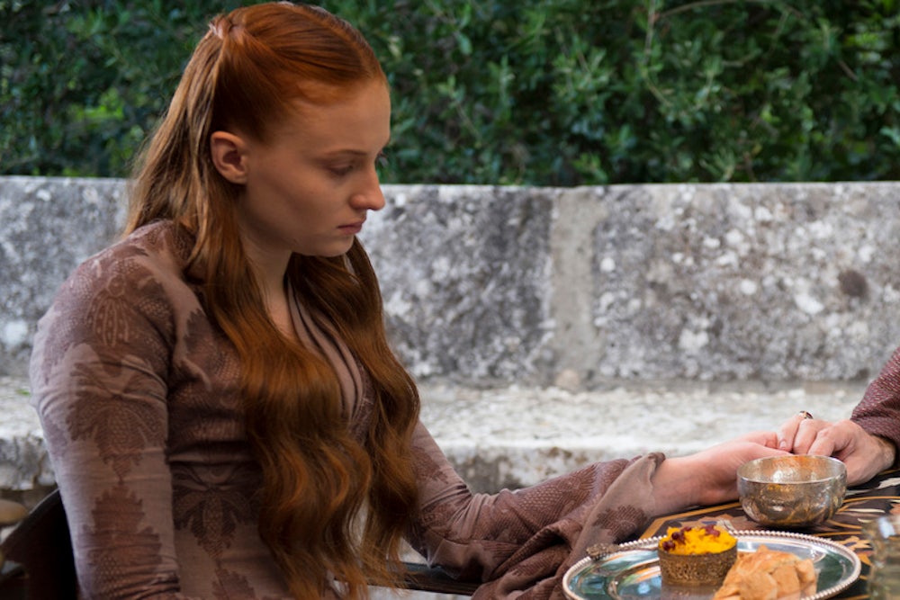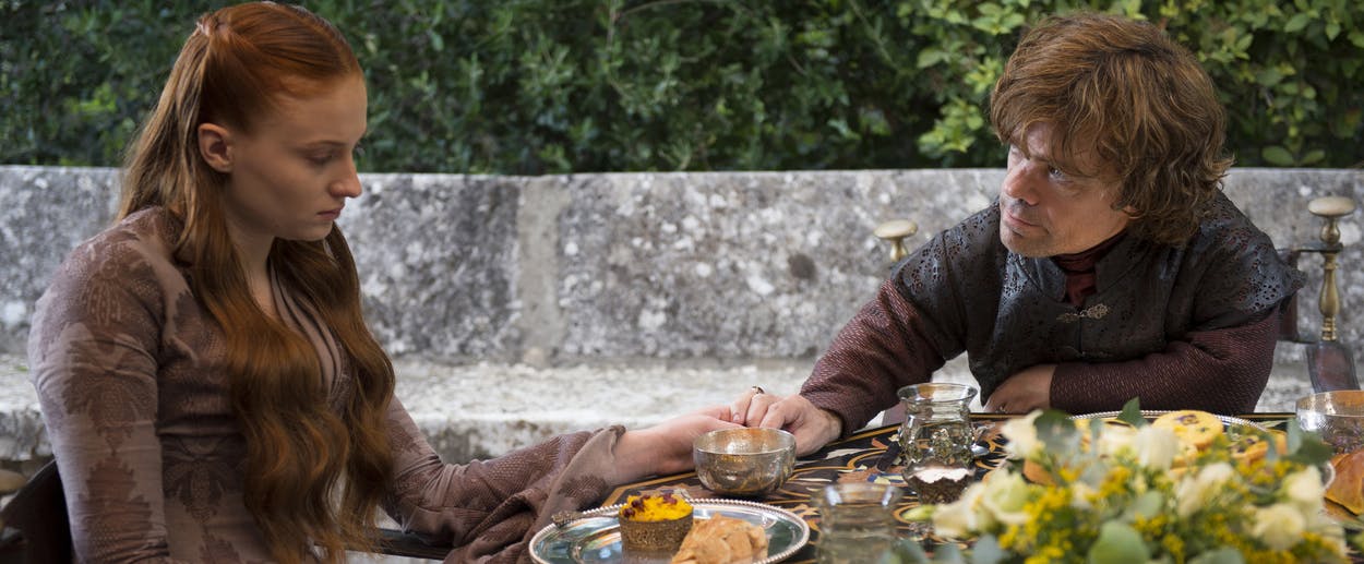 Tyrion and Sansa: Sansa Stark isn't given a lot of credit. She simpers, she whines, and despite everything she's been through, remains vain and cossetted. But in her interactions with Tyrion, Sansa becomes almost likable—and certainly pitiable. It may be because in a world where nearly every sentence is a lie or a threat or a riddle, she brings out the simple, honest decency in Tyrion. In tonight's episode, as he consoles her and begs her to let go of her grief over her mother and brother's deaths, he reaches across the table and grabs her hand. On a show where nearly every touch is the stroke of a naked body or a brutal hand-to-hand combat scene, it's an incredibly tender show of humanity.