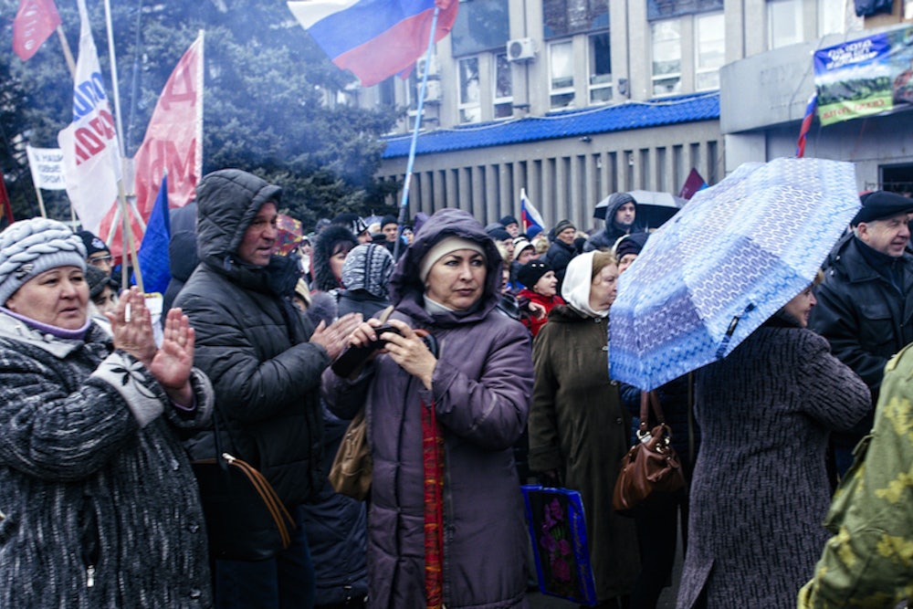 — Christopher Miller (@ChristopherJM) April 13, 2014 Ukrainian Interim President Oleksander Turchynov convened an emergency meeting of the National Security Council following the news from Sloviansk. According to the Guardian, Ukraine advised all Sloviansk residents to stay inside, though at the city's state security office, "A group of up to a 100 civilians, many of them elderly women, stood in front of the building, chanting messages of solidarity to the protesters inside, including 'Referendum!'" In an address to Ukrainians on Sunday, Turchynov called the escalating protests a "repeat of the Crimean scenario" and said that he is willing to give Ukraine's regional governments more autonomy.