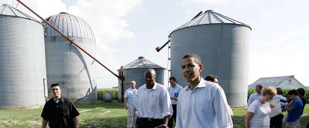 It was seven years ago this July that Barack Obama brought his presidential campaign to the Van Fossen Farm in Adel, Iowa. There, standing between corn and soybean fields, he held forth on agricultural issues. Obama didn’t have a lot in common with Iowa farmers. In his Chicago neighborhood, he conceded, “the main livestock is squirrels.” But that didn’t stop him from trying to feel the farmers’ pain in the way he knew how. Remarking on falling crop prices, Obama asked, “Anybody gone into Whole Foods lately and see what they charge for arugula? I mean, they’re charging a lot of money for this stuff.”