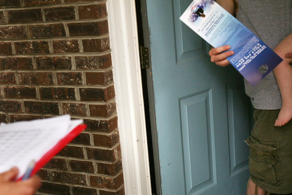 Seen one way, this is cause for great alarm for Democrats in a midterm year. But seen another way, it should be reason for optimism. Once the problem is understood, it can be addressed—and crucially, it is not an existential problem, but a practical one. The irregular voters—“unreliables,” in Issenberg’s lingo—do not need to be won over to the Democrats with some magically persuasive message. They are, for the most part, already inclined to support the party. They just need to be gotten to the polls in midterm years. And there is an increasingly strong grasp of how this can be done: not through brilliant ads seeking to fire up base voters, but through the more targeted and unflashy outreach of shrewdly-phrased direct mail and, best of all, door-to-door contact by campaign canvassers. Issenberg writes: