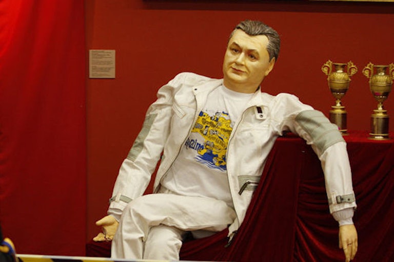 Over the weekend, Kiev saw an exhibit of all the sumptuous ridiculousness deposed Ukrainian president Viktor Yanukovych had stashed in his villa at Mezhyhirya, just outside of Kiev. It's stunning that the president of a country constantly teetering on the brink of economic collapse had the funds to purchase so many posh, unnecessary things, including countless images of, well, himself.