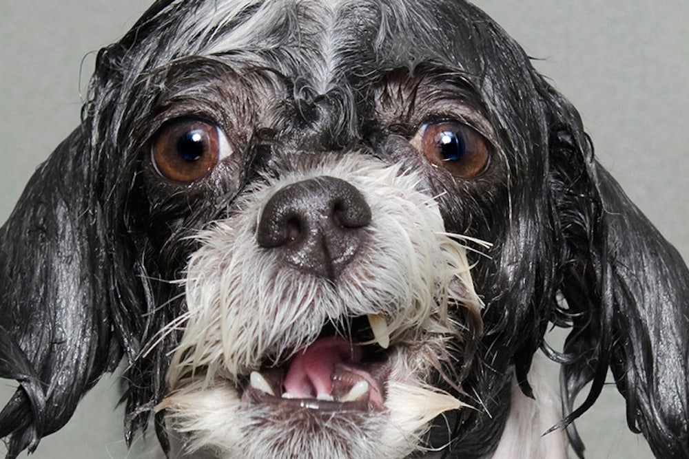 'Wet Dog' is a humorous series of portraits of dogs caught during their least favourite activity: bath time. Exposed at a vulnerable moment, the dogs try to communicate with the photographer with pleading eyes or angry looks.