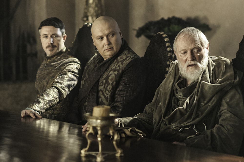 Littlefinger played the contented, reactive yes-man well enough to fool two kings and probably most viewers. While it’s always been clear that, like Varys, Littlefinger sought to enhance his pot of gold and his stockpile of secrets, he often seemed more profiteer than mutineer. But now we know that Littlefinger is playing a long game—one he started years ago, and obviously plans on playing years into the future. Which brings us to two competing theories of what exactly Littlefinger wants: the crown itself, or the kind of continuous upheaval across Westeros that will allow him to keep playing puppeteer?