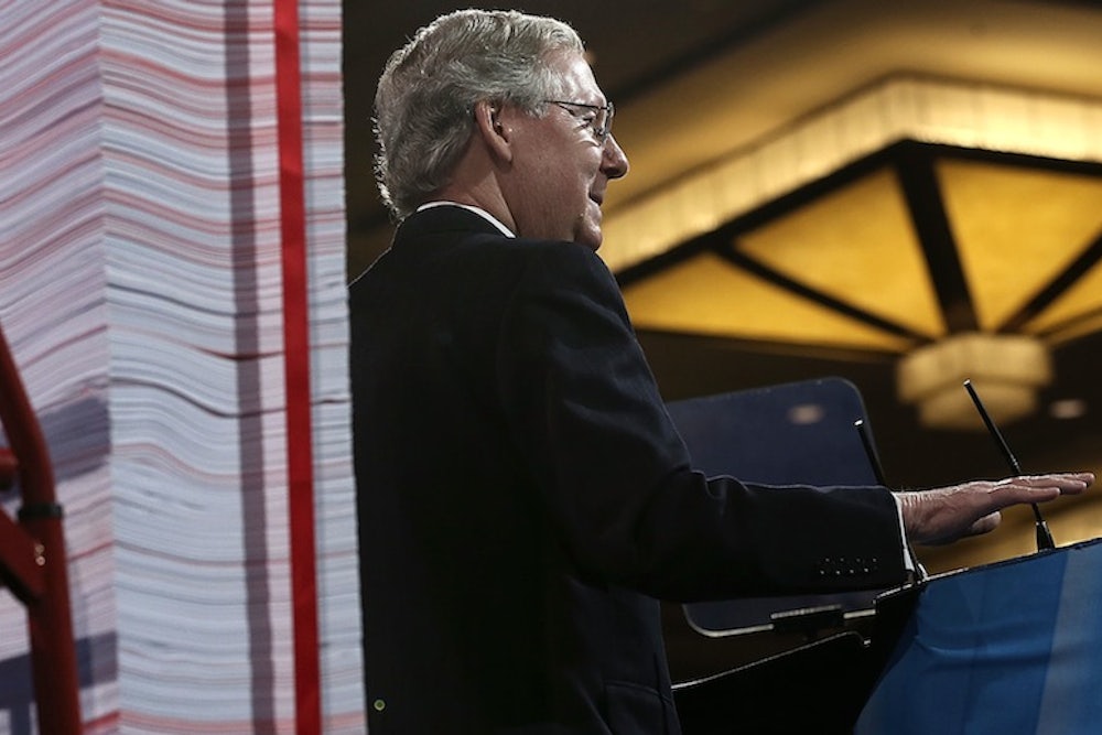 It took the winding down of GOP primary season for the Republican Party's increasingly incoherent position on the Affordable Care Act to attract national media attention, and nobody did more to thrust it under the press' nose than Senate Minority Leader Mitch McConnell—the original gangster of anti-Obamacare absolutism.