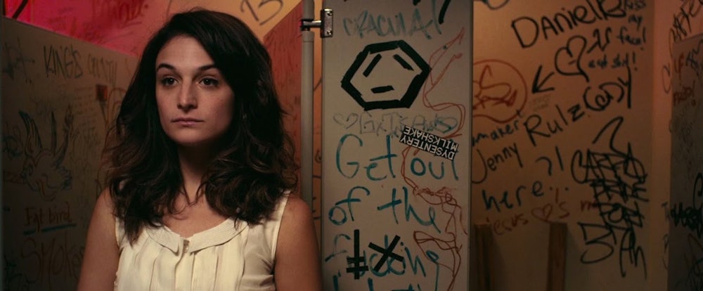 The first time we see Donna Stern (comedian Jenny Slate), she’s on a dimly lit stage telling jokes about her crusty underwear to a mildly appreciative crowd. The confessional stand-up comic at the center of Obvious Child, Donna is an increasingly familiar type—young, aimless, broke, Brooklyn. (See also: Lena Dunham, Greta Gerwig, the girls of “Broke City.”) Donna has a messy love life and a mouth as filthy as any Apatovian man-child. Fresh from a break-up, she meets Max (Jake Lacy), a clean-cut MBA grad, at a bar and goes home with him; they dance to Paul Simon in their underwear and have sex.