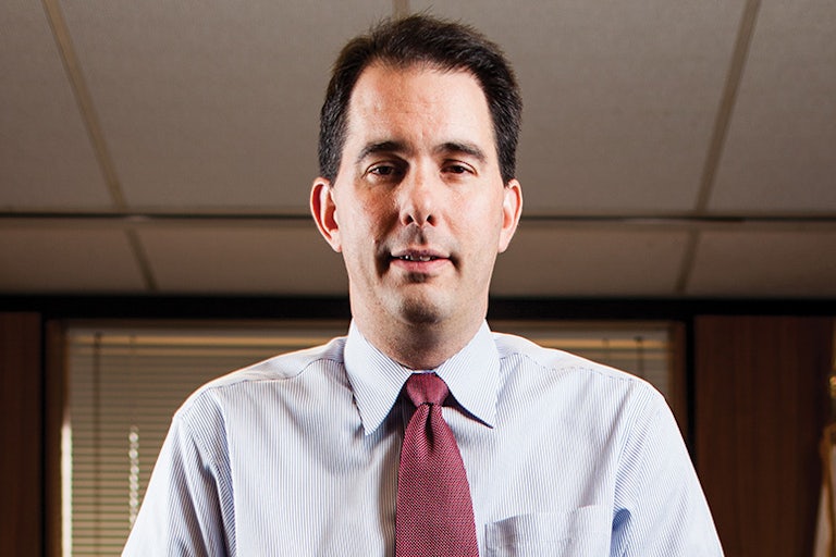 Walker’s growing profile served him well as he advanced through the political ranks. In 2002, the Democratic executive of Milwaukee County, which encompasses the 600,000-person city and 355,000 in its inner suburbs, resigned amid a pension scandal. Walker won the special election and proceeded to spend the next eight years tussling with the Democratic-led county board over taxes and spending. He succeeded in making deep cuts to county parks and public transit; once, he sent layoff notices to county workers so they would pressure the council to buckle to his budget demands. So often did he call in to Belling’s show—to chat on air or to spin the host during a commercial break—that he had access to an emergency-only phone line to the studio that was off- limits to station employees, even for calls to family. “It was essentially the ‘zombies are rising’ line,” says Terry, the former WISN employee.