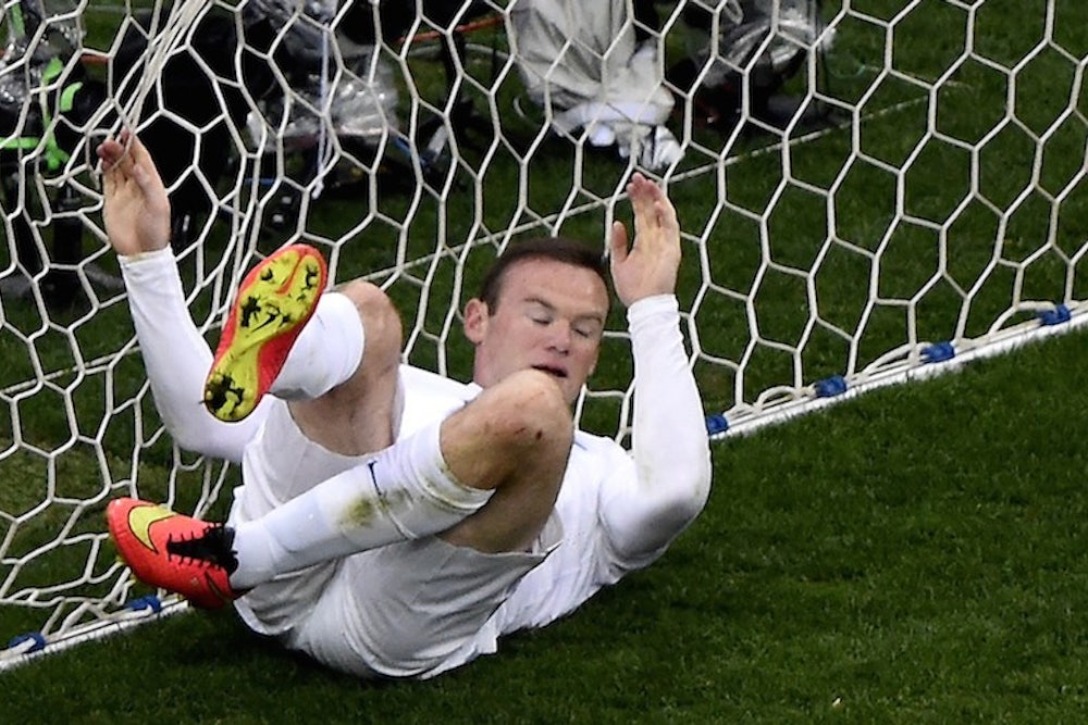 Rooney hits the bar, harder to miss.