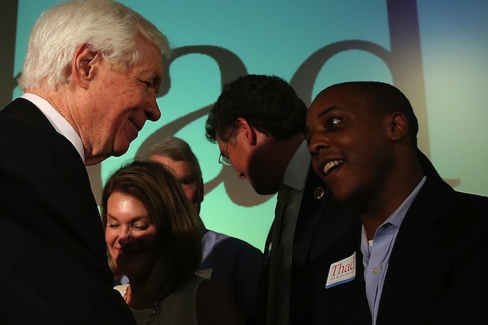 But even in the right's more polite precincts, Cochran's late appeal to black Democrats is considered a grave sin. Specifically, conservatives are upset Cochran turned out black voters by informing them that McDaniel is, at best, a racially insensitive reactionary. John Fund registered his disapproval by posting a flier, which Cochran supporters supposedly distributed in black neighborhoods. It highlights racist comments McDaniel made on his radio show, along with his opposition to a Civil Rights museum, federal funding of public schools, and SNAP benefits.